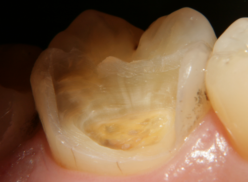 Кариесът е може би най-честото заболяване при човека. В практиката са използвани различни класификации на кариеса, но може би най-удачно е разделянето на кариеса на първичен и вторичен. Първичният се развива на места, на които няма лекуван преди това кариес - на снимката горе се вижда дъвкателна повърхност на първи горен молар, в централната фисура на който се е развил кариес. Обратно, вторичният кариес се развива около стари обтурации, които по една или друга причина са компрометирани; между обтуровъчния материал и зъба се задържат хранителни остатъци, които постепенно се разпадат и се превръщат в идеална хранителна среда за развитие на кариесогенни микроорганизми. На снимката долу се вижда кариес около стара амалгамена обтурация.